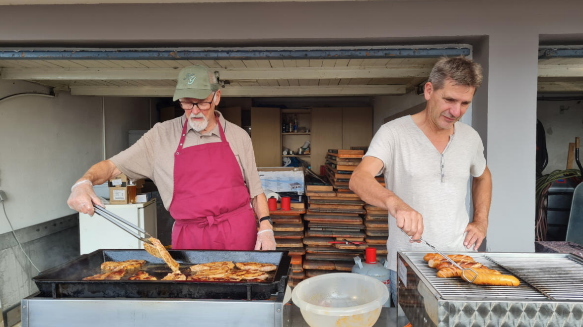 Dafür sorgte vor allem der unermüdliche Klaus, der den ganzen Laden in Laune hielt. So liefs wie geschmiert mit Speis und Trank. Das alles passte, dafür sorgten die fleißigen Hände im Team von Gustav.