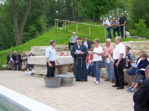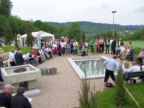 Ab sofort steht die Kneippanlage der Öffentlichkeit zur Verfügung. Mit einer kleinen Zeremonie wurden das Armbade- und das Tretbecken durch Bürgermeister Wörner freigegeben, nicht nur begrenzt auf Allmersbacher, sondern erweitert auch für Bürger der Nachbargemeinden, wie er in seiner Ansprache hervorhob.